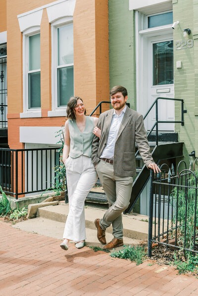 Generally couples pick two outfits for an engagement session: a more formal outfit and a casual outfit. I recommend saving your favorite outfit for later in the session, when couples usually feel more comfortable in front of the camera. And don’t forget to bring a few accesorries! Statement necklaces, cute shoes and classic watches are great ways to add detail to outfits.